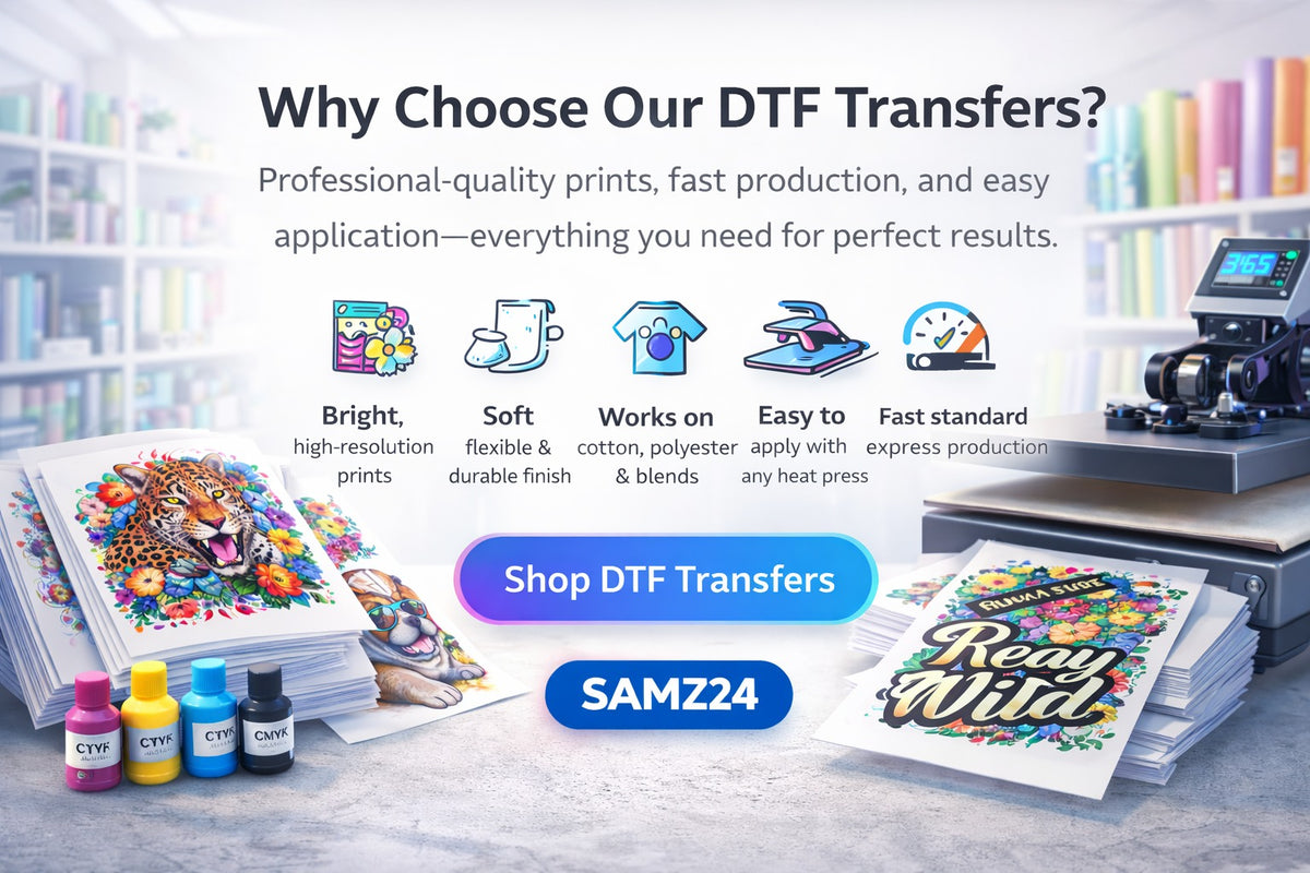 Whether you’re running a print business or creating custom apparel at home, our DTF transfers deliver sharp details, rich colors, and long-lasting performance on a wide range of fabrics.