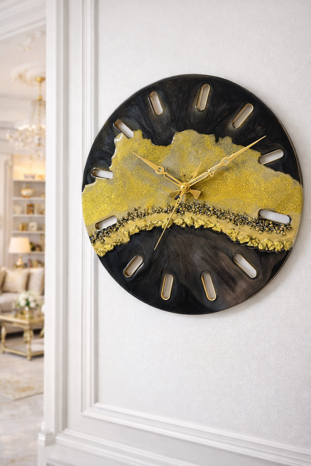 Luxury Handmade Black & Gold Epoxy Resin Clock – Modern Resin Art by SAMZ24 Elevate...