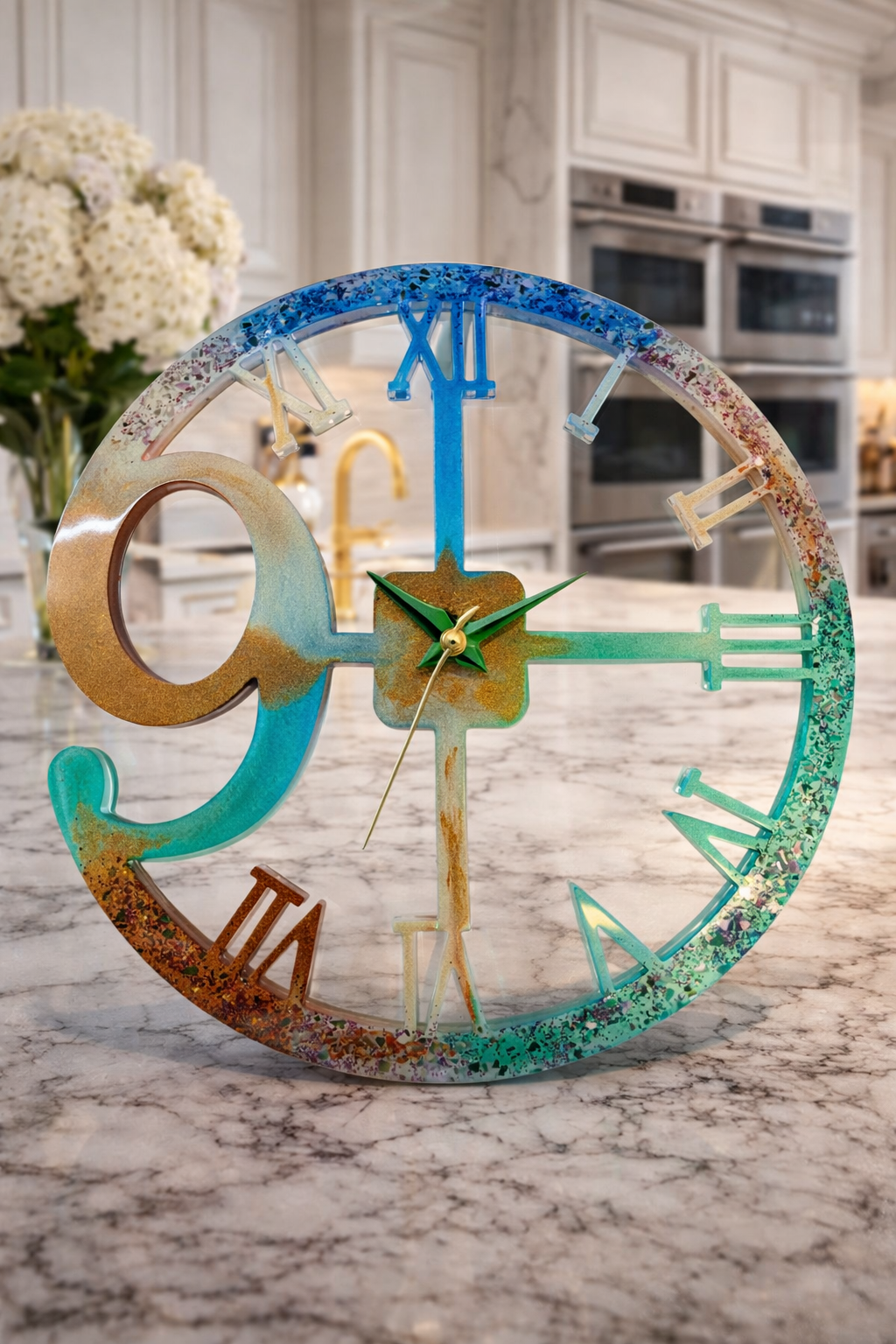 Handmade Multicolor Epoxy Resin Clock – Modern Artistic Wall Decor by SAMZ24 Add a bold...