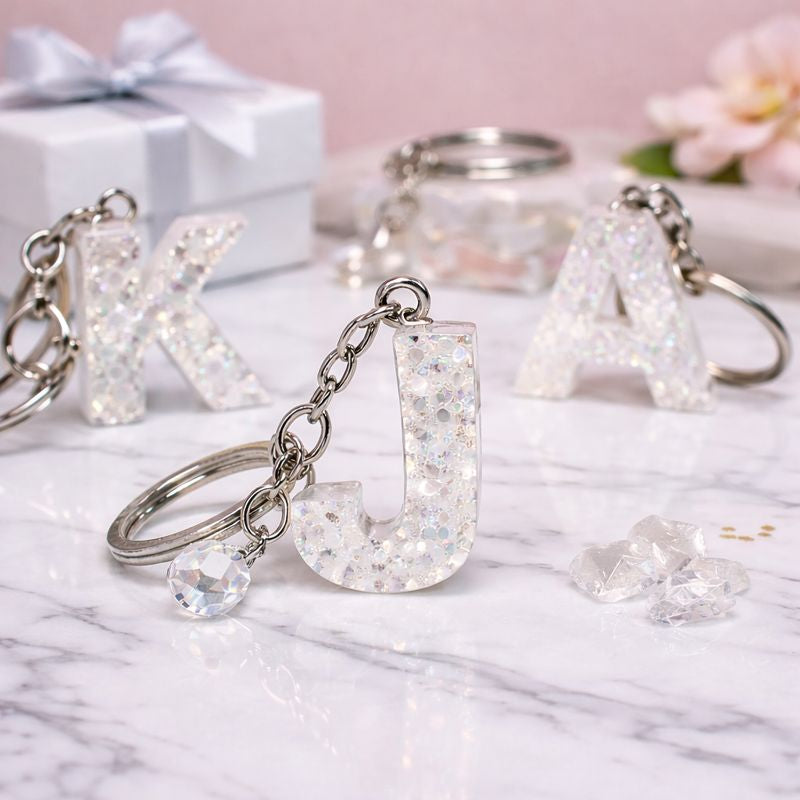 The Clear Keychain boasts a sleek, high-quality resin finish that showcases crisp, bold typography, while its compact size ensures it stays securely attached to your keys. The precision-cut "J" design adds a touch of understated sophistication to this everyday essential, making it a thoughtful accessory for anyone seeking a stylish and functional keychain.