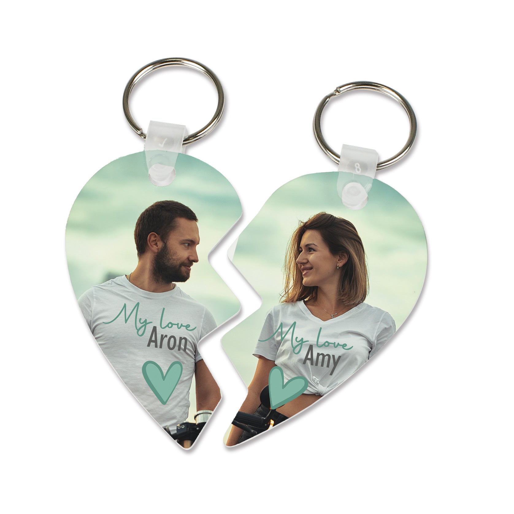 The heart halves, which can be printed on both sides, make the perfect Valentine's Day gift. In addition, the key rings with a photo of those special people make a constant companion that provides twice the pleasure.